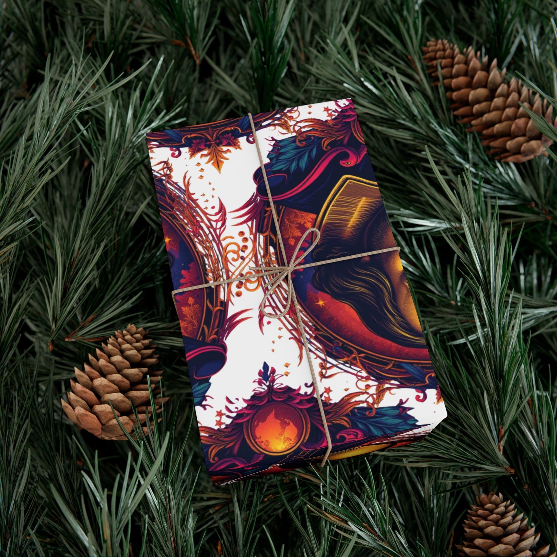A rich, art-forward gift wrap that turns every present into a moment. Deep jewel tones and layered, mystical portraiture create a moody, immersive backdrop that feels like unwrapping a secret. The paper’s satin or matte finish enhances color depth and tactile appeal while remaining durable enough to resist scratches, water, and cracking when folded. Printed with water-based, GreenGuard UL certified inks, this recyclable wrap brings vibrant, archival-quality imagery to holiday giving, birthdays, or intimate gatherings where aesthetic detail matters.